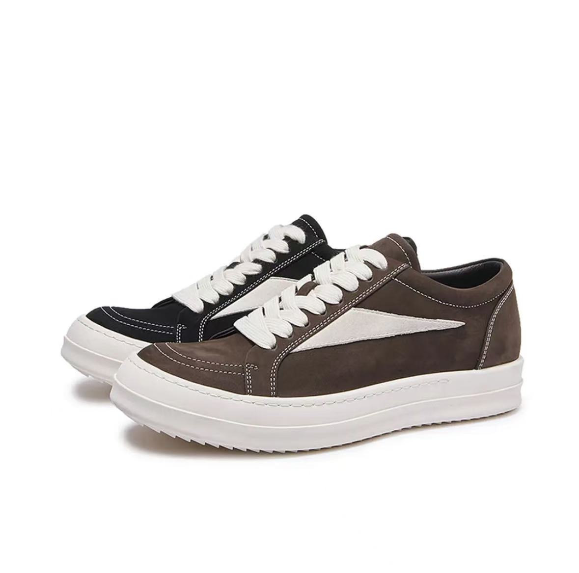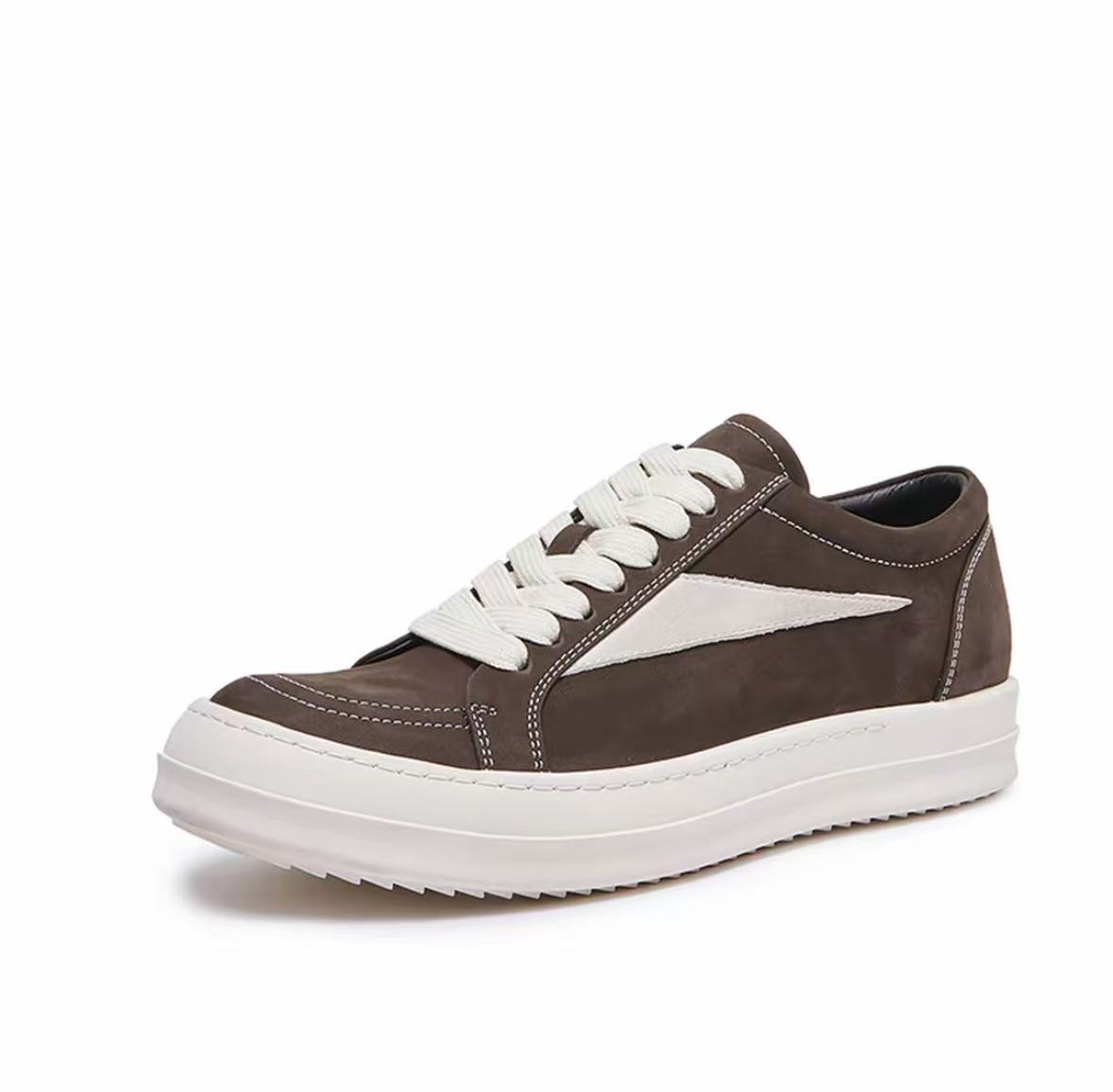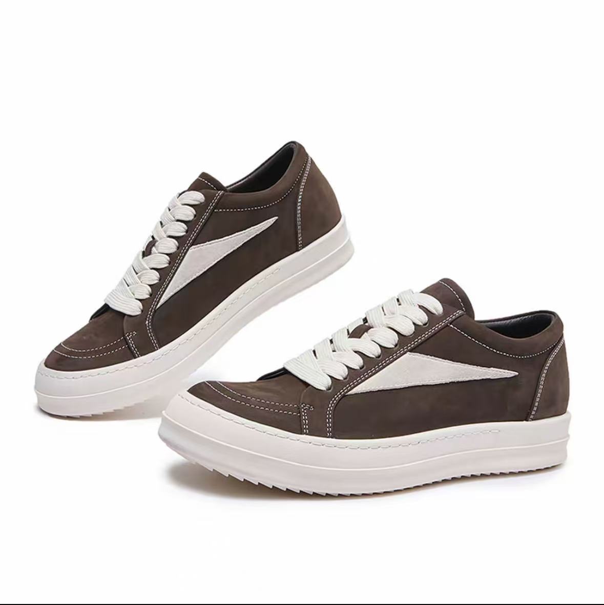 2026 Triangle Sneakers Genuine Suede Leather Thick Sole Platform Shoes Men Casual Footwear