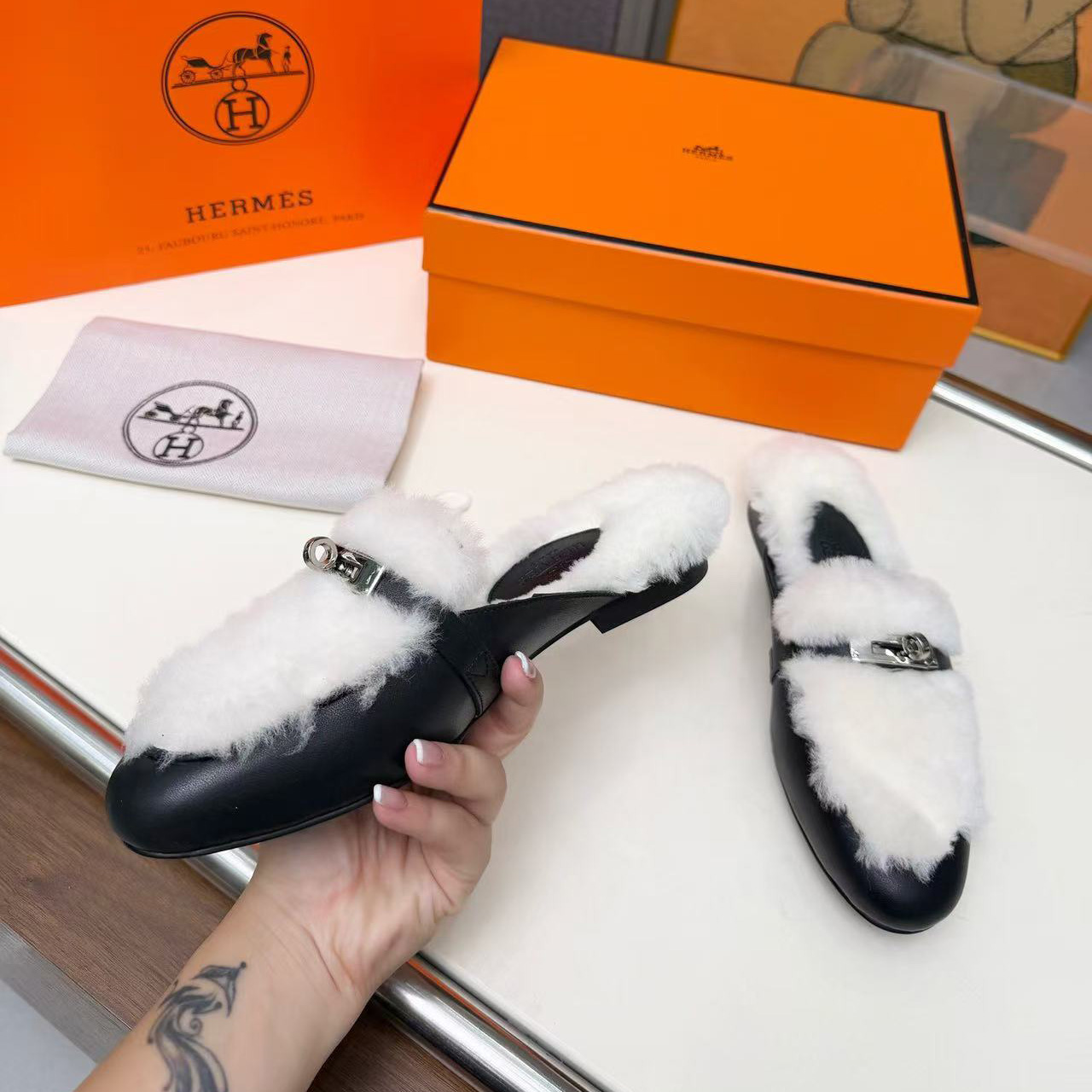 • Premium Materials: Crafted from smooth black calfskin (durable, luxe texture) paired with plush white shearling (soft, warm, and cozy for cooler seasons).